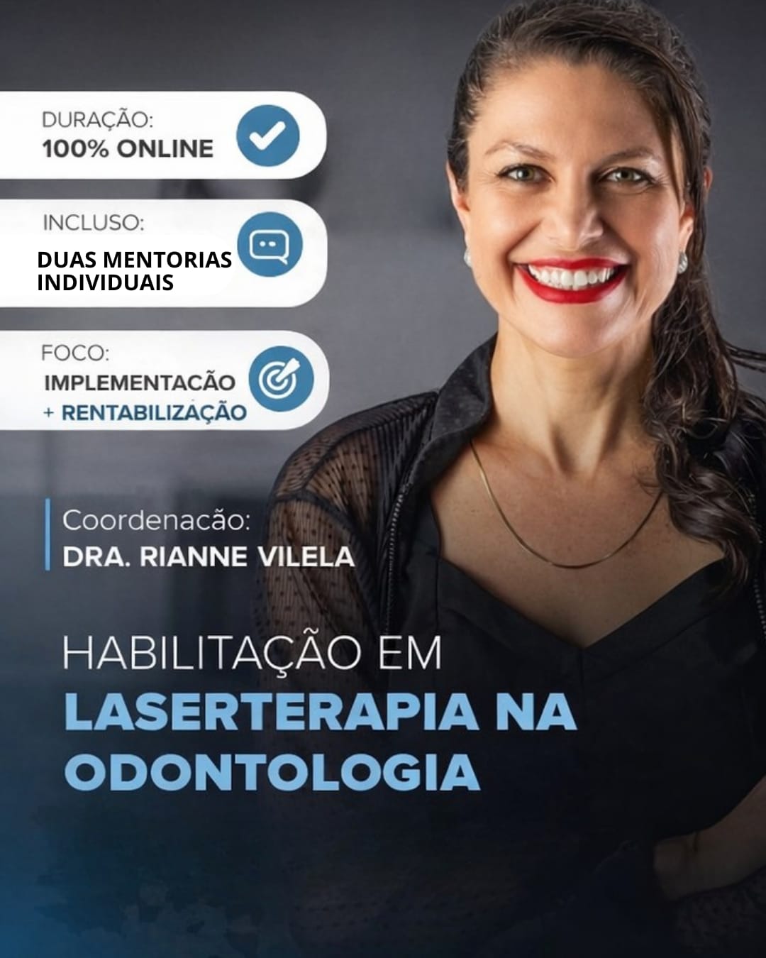 👩🏻💻Depois de 50% das aulas online concluídas você pode agendar as mentorias online individuais (eu e você). São dois encontros comigo (Profª Rianne Vilela – @riannevilela.odontologia) para traçarmos a estratégia de implementação no seu consultório ou carreira.